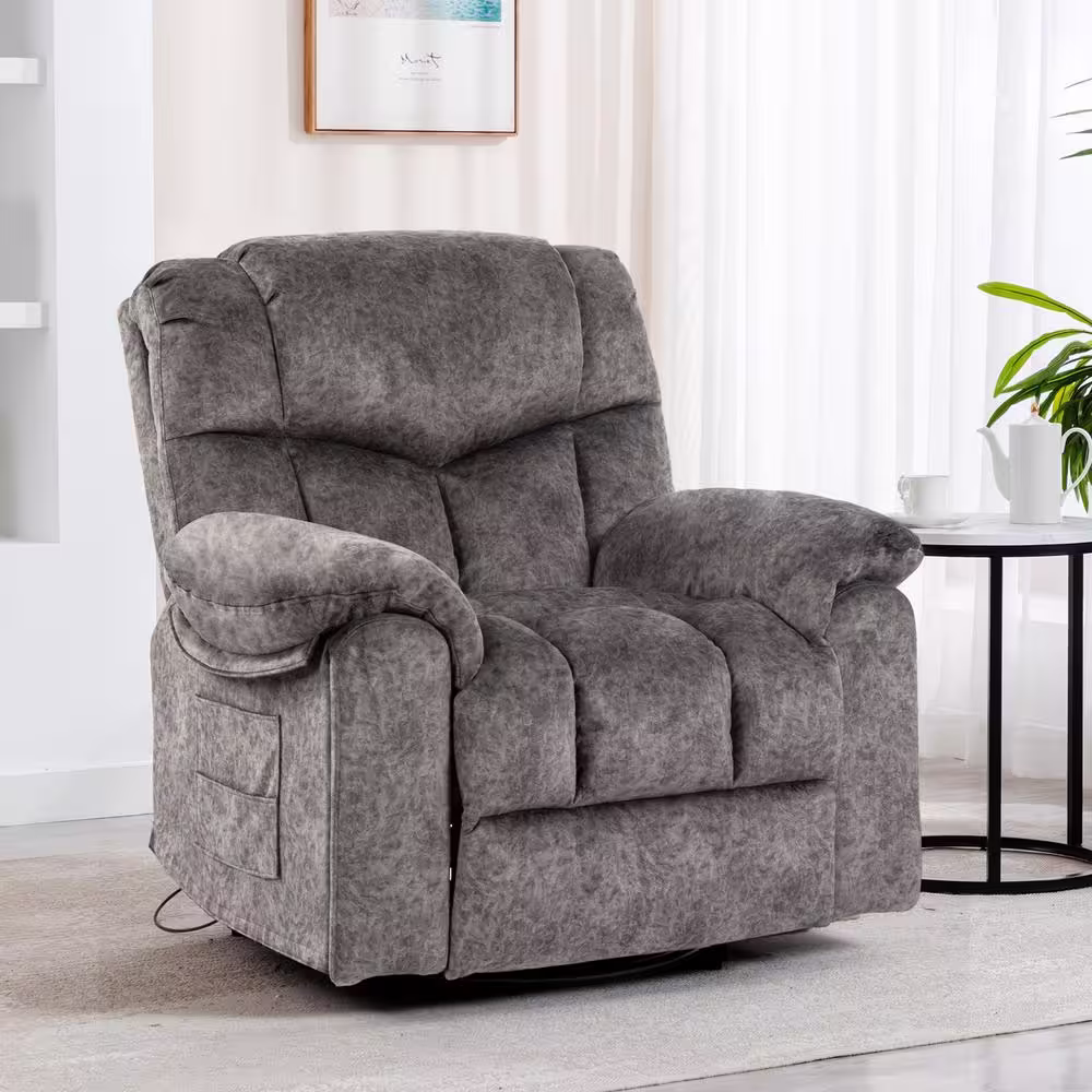 None Grey Swivel and Rocking Recliner Chair with Massage and Heating Bonded Leather Sofa