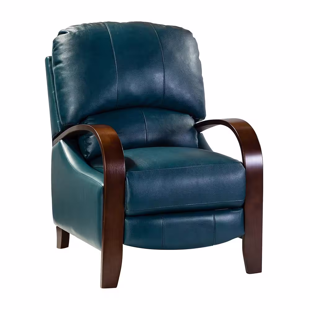 None Ernesto Turquoise Genuine Leather with The Wooden Armrest Recliner