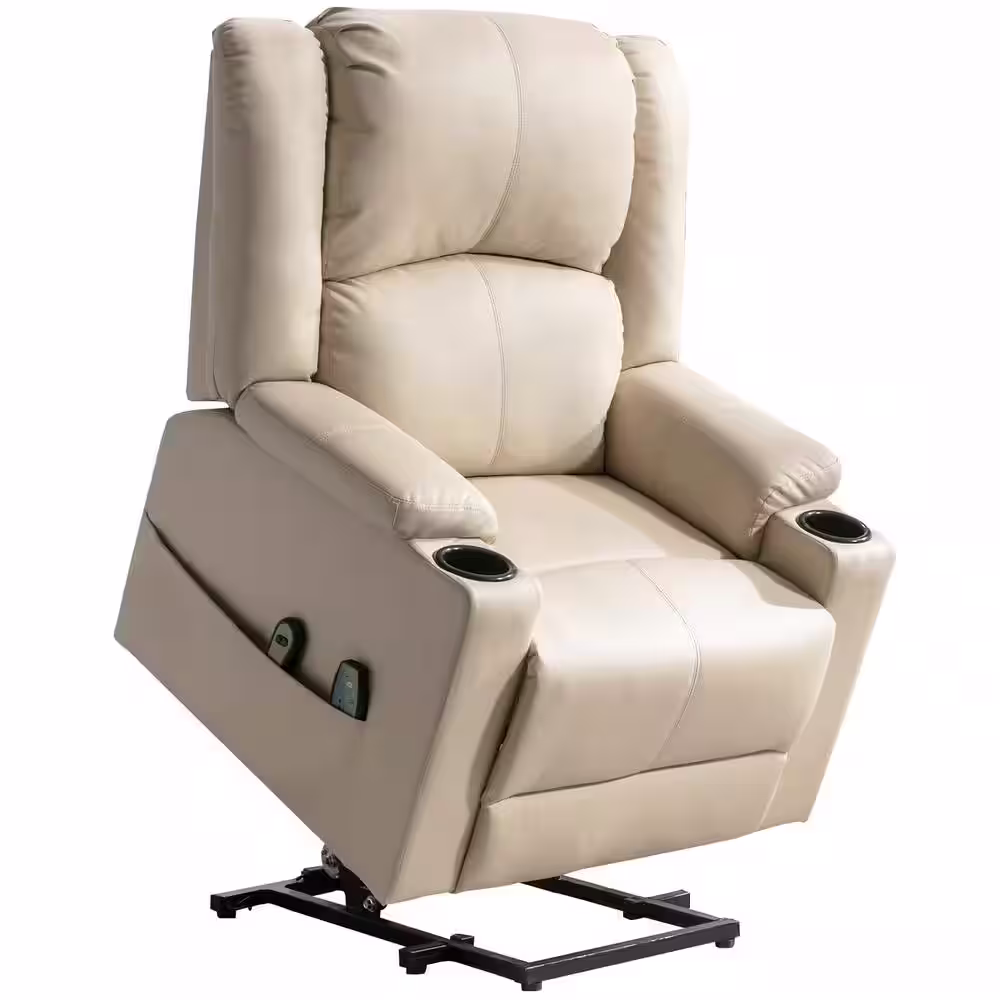 Boyel Living Beige Ergonomic Chenille Fabric Power Lift Recliner Chair for Elderly with 8-Point Massage and Remote Control
