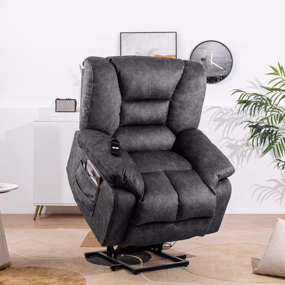 None Gray Oversized Power Lift Recliner Chair Sofa for Elderly with Massage and Heating