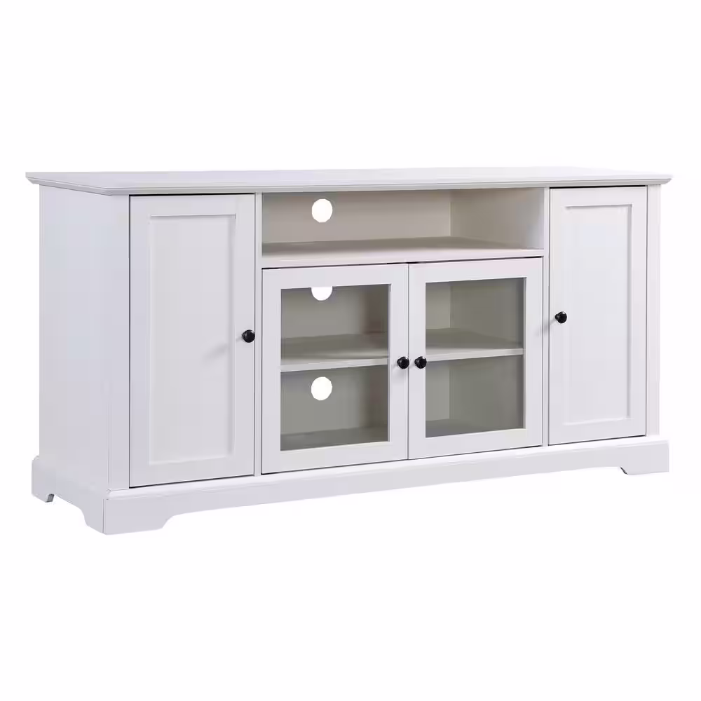 None 59.80 in. W White TV Stand Fits TV up to 65 in. with 2 Tempered Glass Doors Adjustable Panels Open Style Cabinet