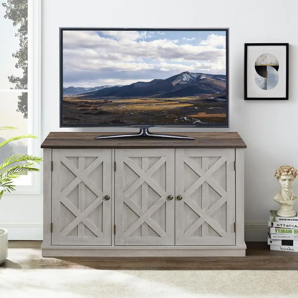 FESTIVO 48 in. Saw Cut-Off White TV Stand for TVs Upto 55 in.