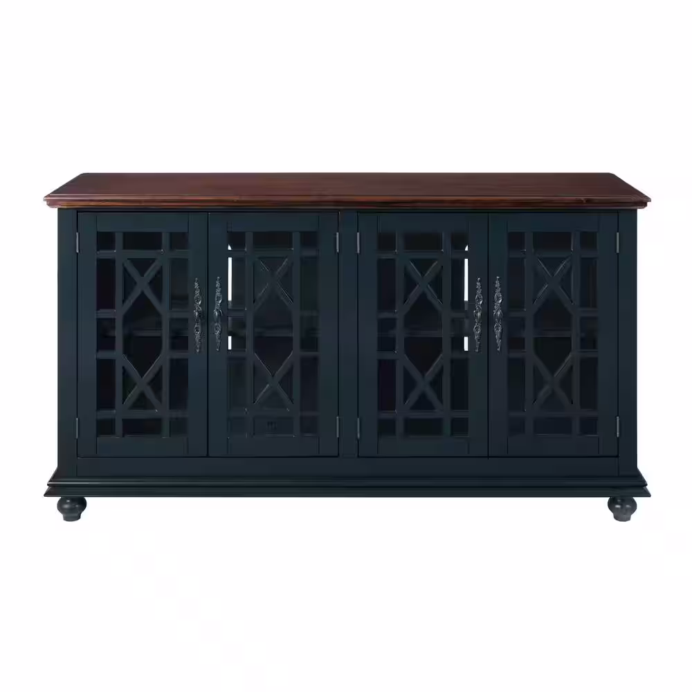 None 66 in. Fully Assembled Blue and Whiskey TV Stand, Fits TV's up to 75 in.