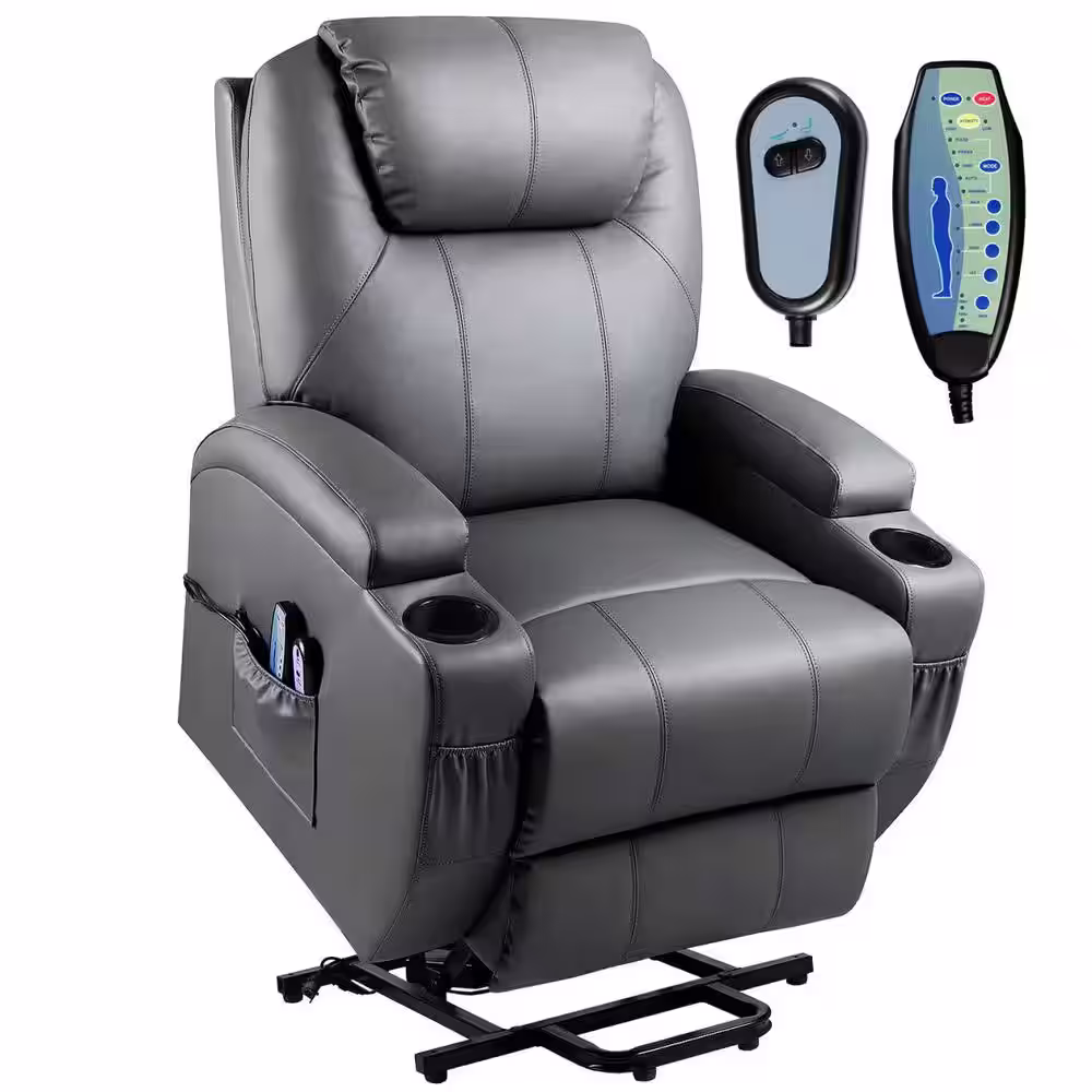 LACOO Big and Tall Gray Power Lift Recliner Chair for Elderly with Massage and Heat, Side Pockets and Cup Holders