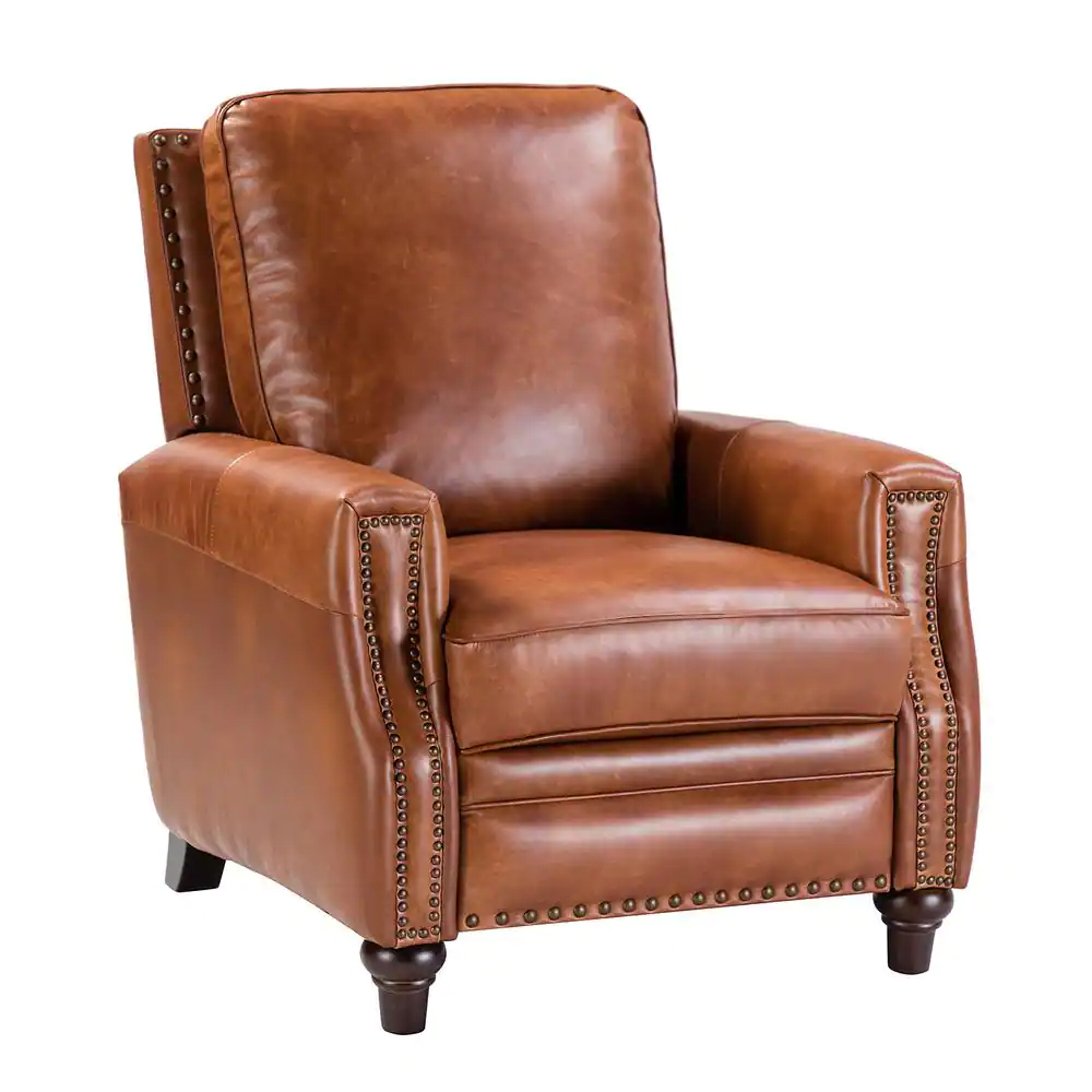 JAYDEN CREATION Theresa Comfy Saddle Manual 3-Position Cigar Genuine Leather Recliner with Nailhead Trim and Solid Wooden Legs