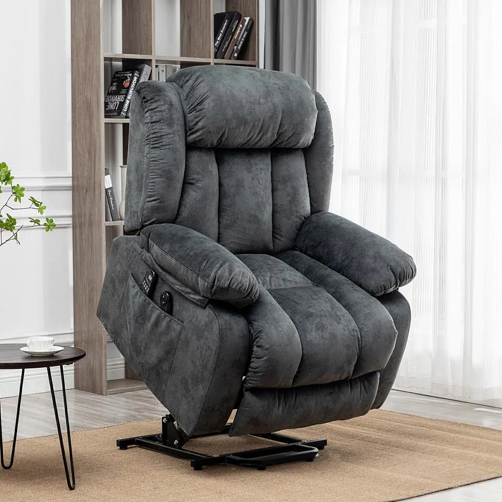 KINWELL Gray Soft and Big Multifunctional Power Lift Heated Massage Recliner