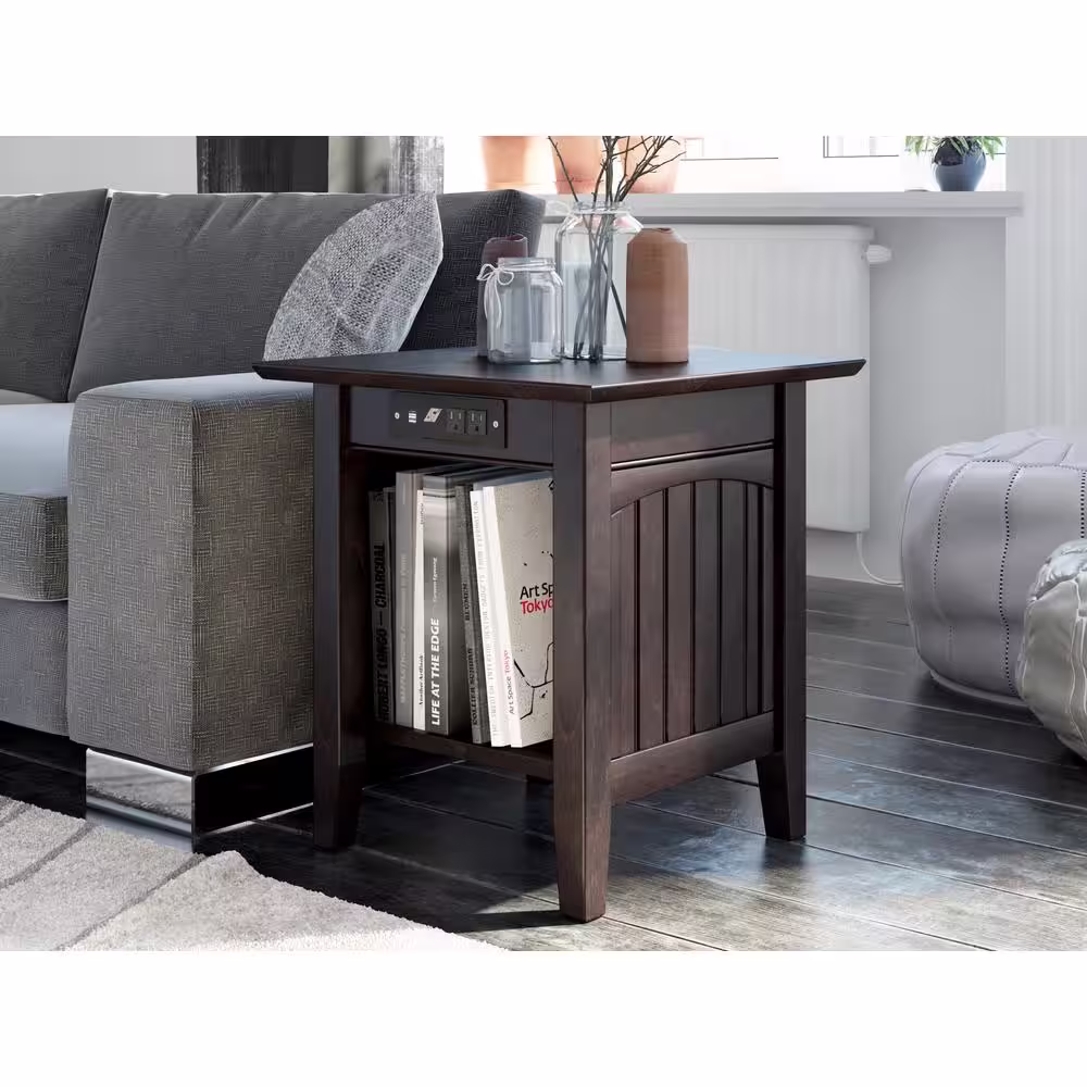 Atlantic Furniture Nantucket End Table with Charging Station in Espresso