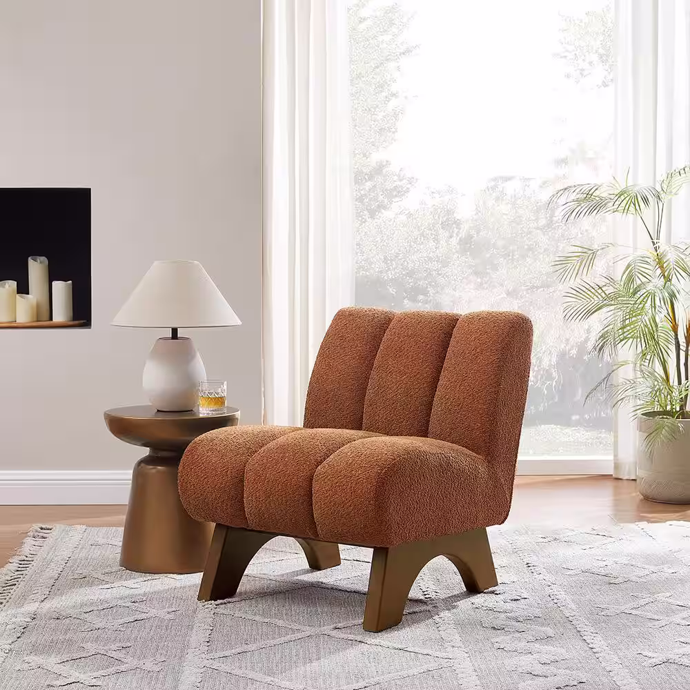 None COZY Burnt Orange Fabric Accent Slipper Chair with Wood Legs