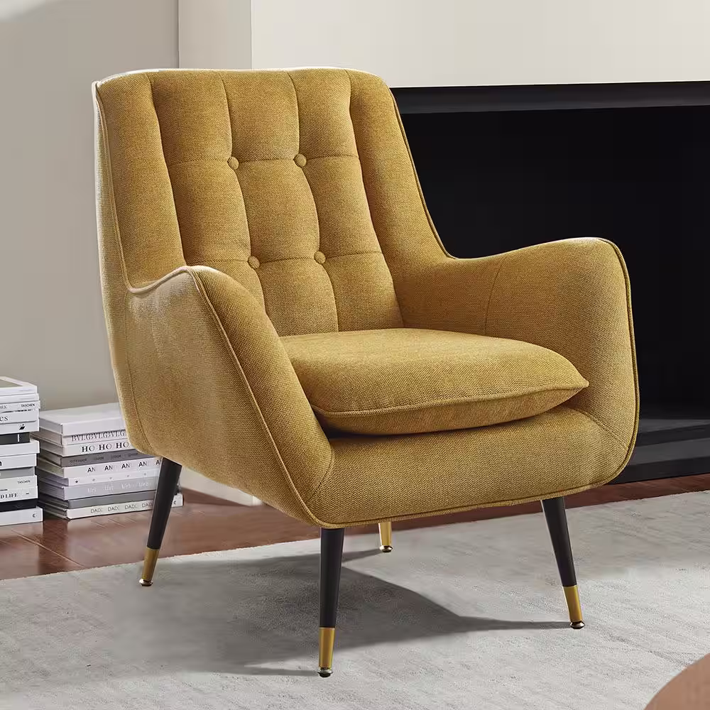 None MIA Yellow Fabric Mid-Century Accent Arm Chair with Cushion and Legs