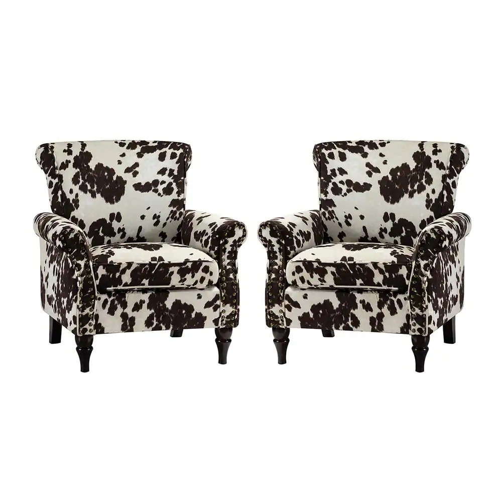 JAYDEN CREATION Auria Contemporary Cowhide Polyester ArmChair with Nailhead Trim and Turned Legs (Set of 2)
