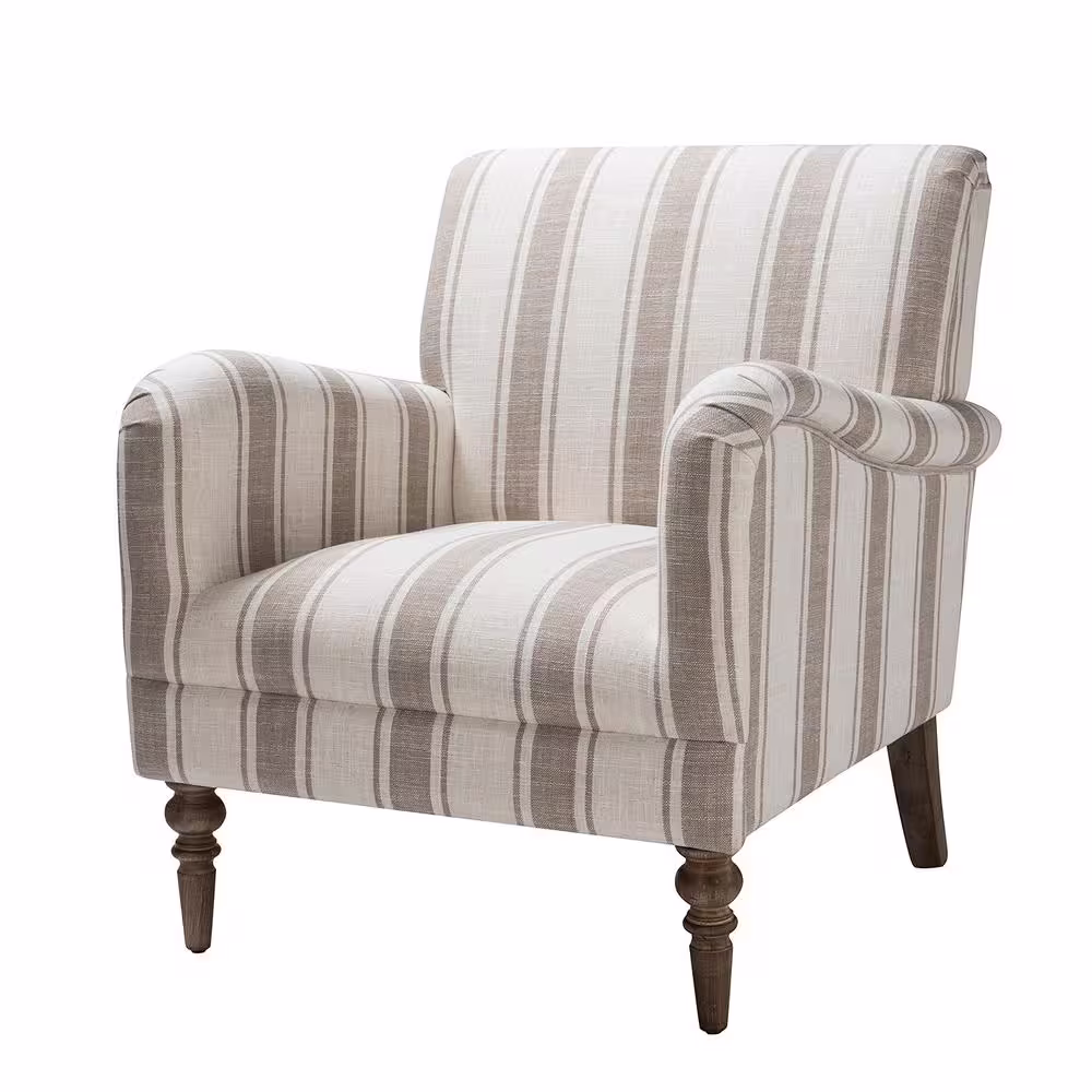 JAYDEN CREATION Hallstatt Tan Classic Wooden Upholstery Accent Arm Chair with Wood Base