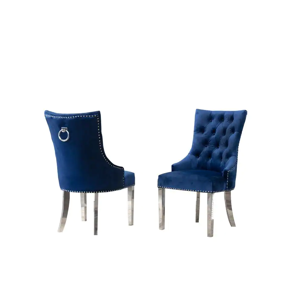 None Sam Navy Blue Velvet Stainless Steel Legs Chairs (Set of 2)