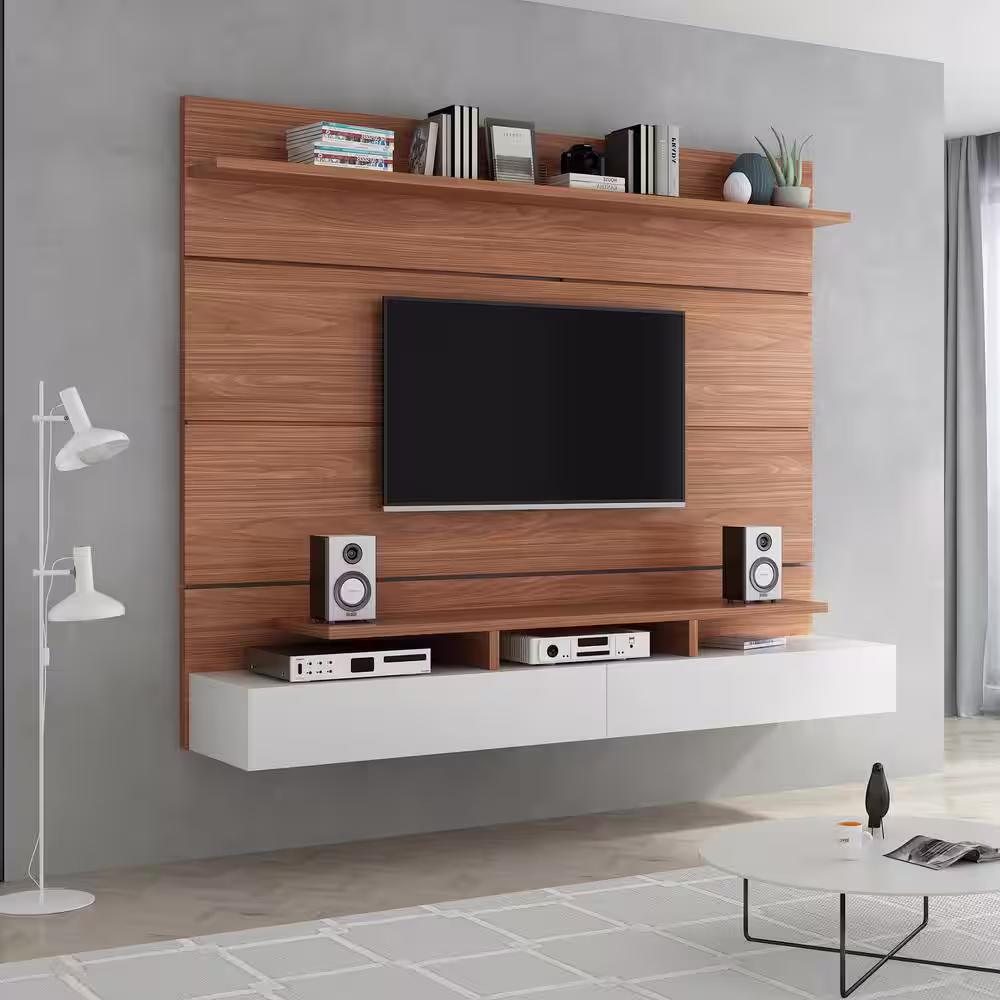 Harper & Bright Designs Natural Wood Modern Wall Mounted Floating Entertainment Center Fits TV up to 80 in. TV Stand with 2-Drop Down Doors
