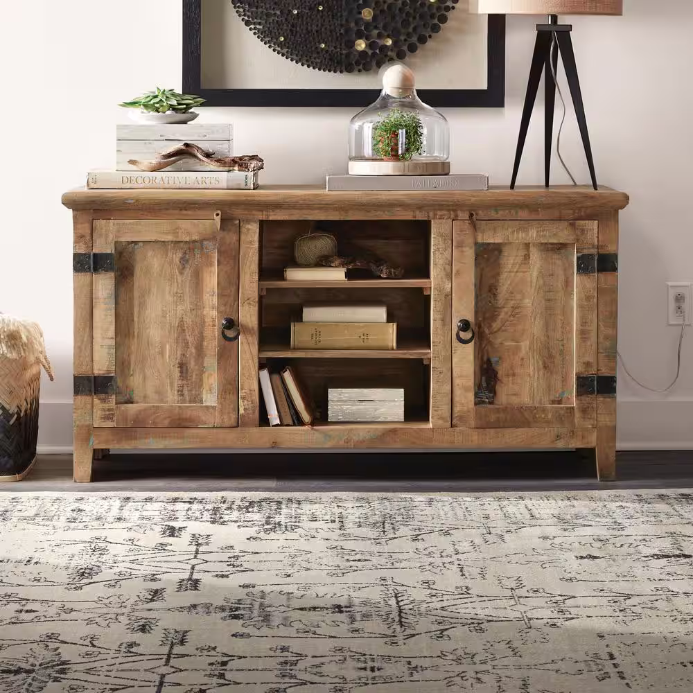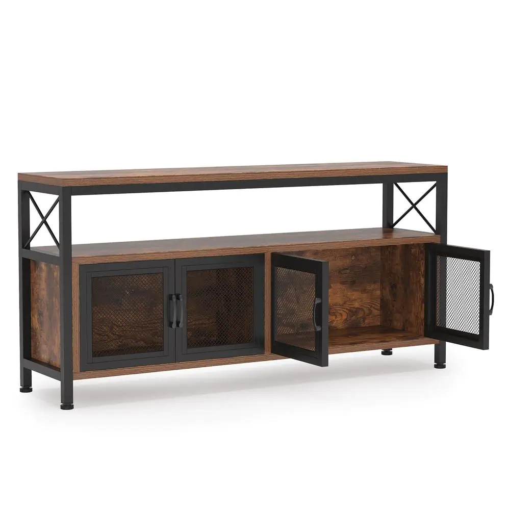TRIBESIGNS WAY TO ORIGIN Tabor 58.66 in. Rustic Brown TV Stand with 2-Cabinets Fits TV's Up to 75 in. with Shelves and Grid Doors