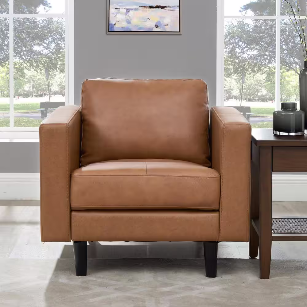 None 32.6 in. W Tan Top Grain Leather Mid-Century Chair, Sofa Couches for Living Room Furniture, Accent Chairs for Bedrooms
