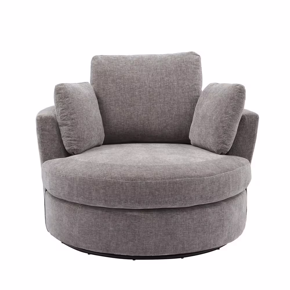 None 42.2 in. W Gray Chenille Swivel Accent Barrel Chair Oversized Arm Chair with 3 Pillows