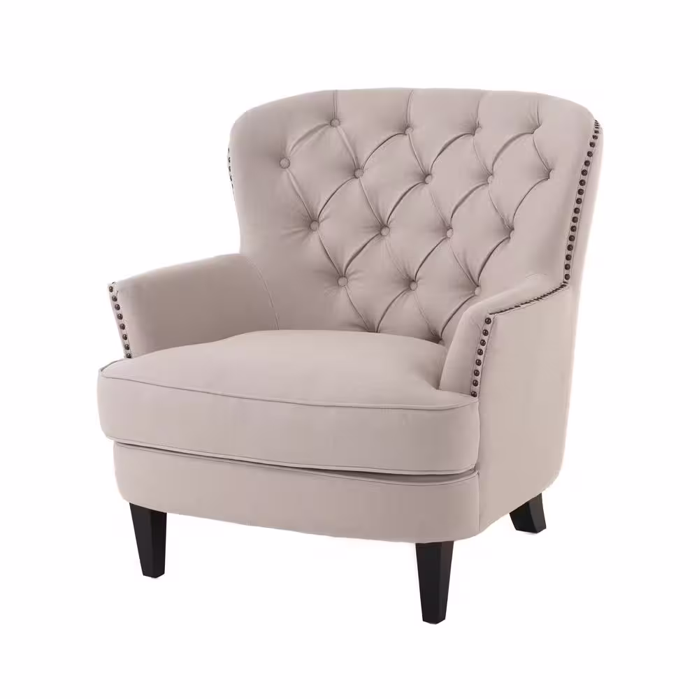 Noble House Merritt Light Beige Fabric Tufted Club Chair