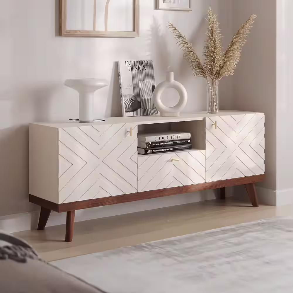 None 70 in. Farmhouse Style Off White TV Stand Fits TVs Up To 78 in. with Open Shelves