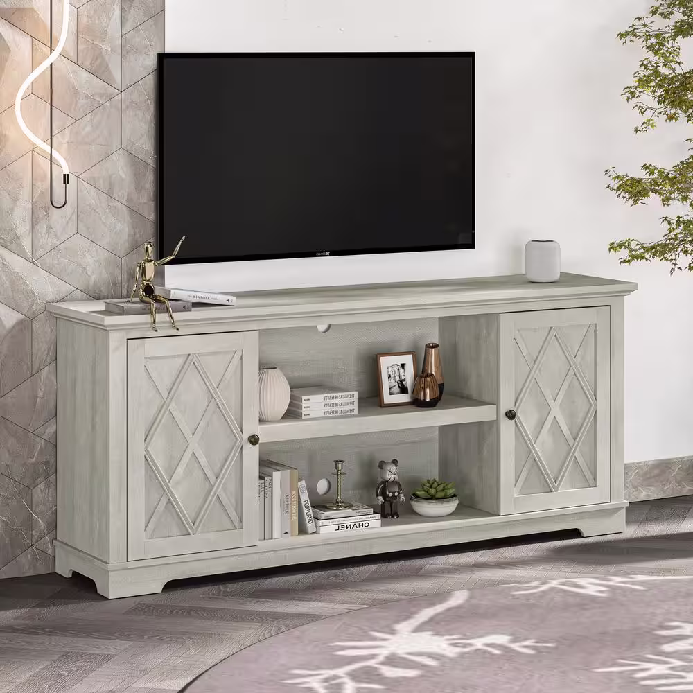 TECHNI MOBILI 57.25 in. Gray Wood TV Stand Fits TVs Up to 65 in. with Storage Doors