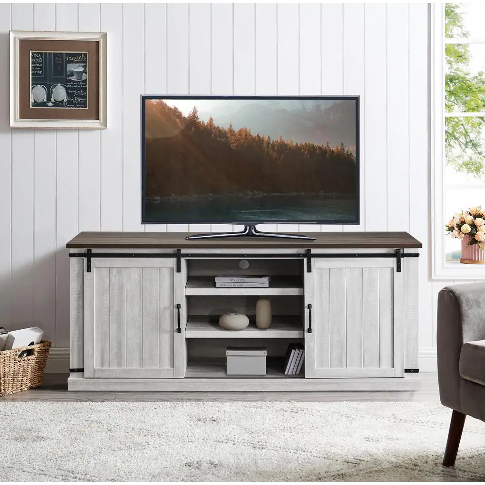 None 69 in. W White Wood Entertainment Center TV Stand Console with Door Storage Cabinet for TV up to 75 in.
