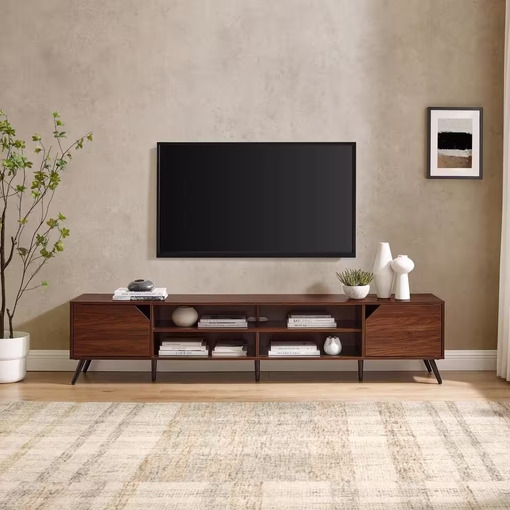 Welwick Designs 80 in. Dark Walnut Wood Modern Wide TV Stand with Open and Closed Storage Fits TVs up to 90 in.