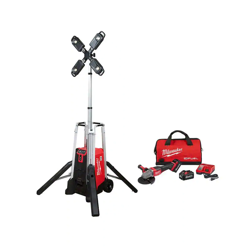 Milwaukee MX FUEL ROCKET Tower Light/Charger with M18 FUEL Lithium-Ion Brushless Cordless 4-1/2 in./6 in. Grinder Kit