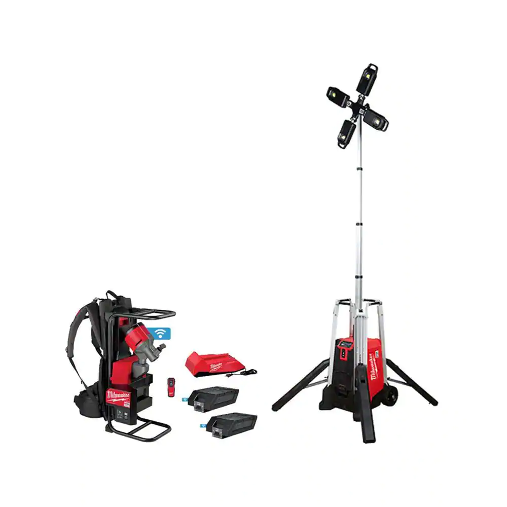 Milwaukee MX FUEL ROCKET Tower Light/Charger and MX FUEL Backpack Concrete Vibrator Kit
