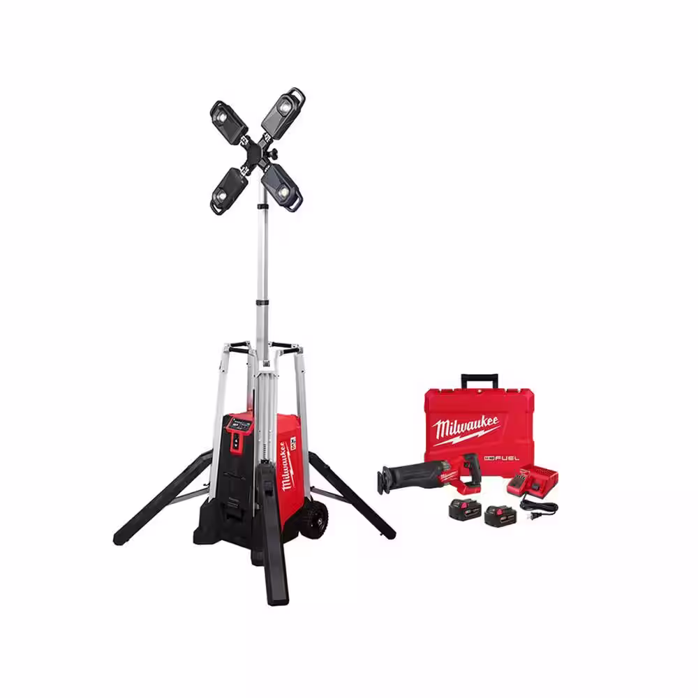 Milwaukee MX FUEL ROCKET Tower Light/Charger w/M18 FUEL Lithium-Ion Brushless Cordless SAWZALL Reciprocating Saw Kit