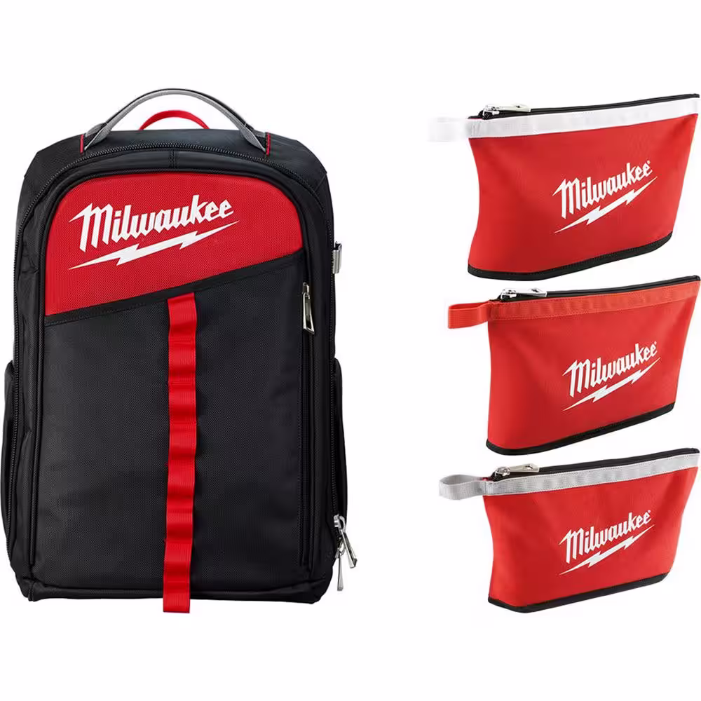Milwaukee 14 in. Low Profile Backpack with 12 in. Zipper Tool Bag in Multi-Color (3-Pack)