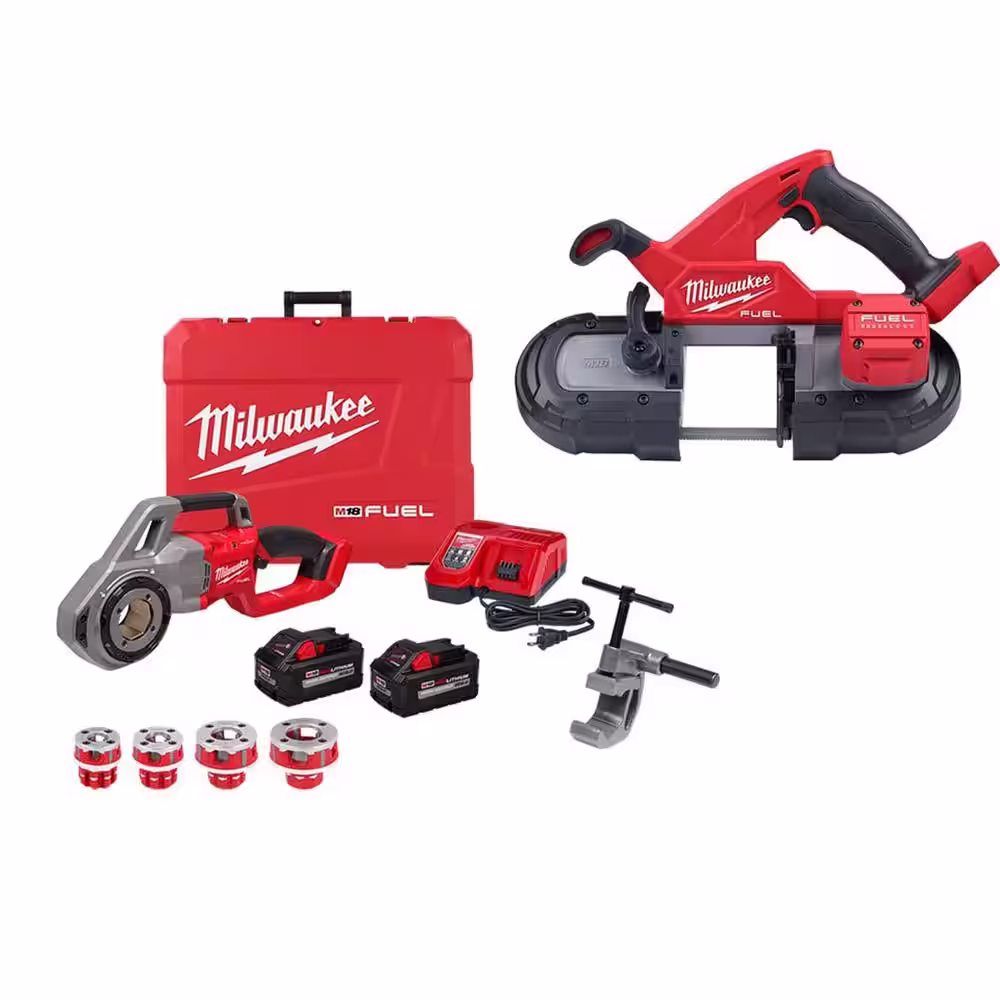 Milwaukee M18 Fuel One-Key Cordless Brushless Pipe Threader Kit with M18 Fuel Bandsaw (2-Tool)