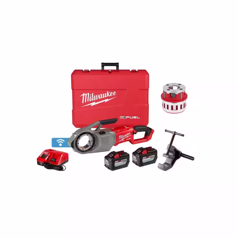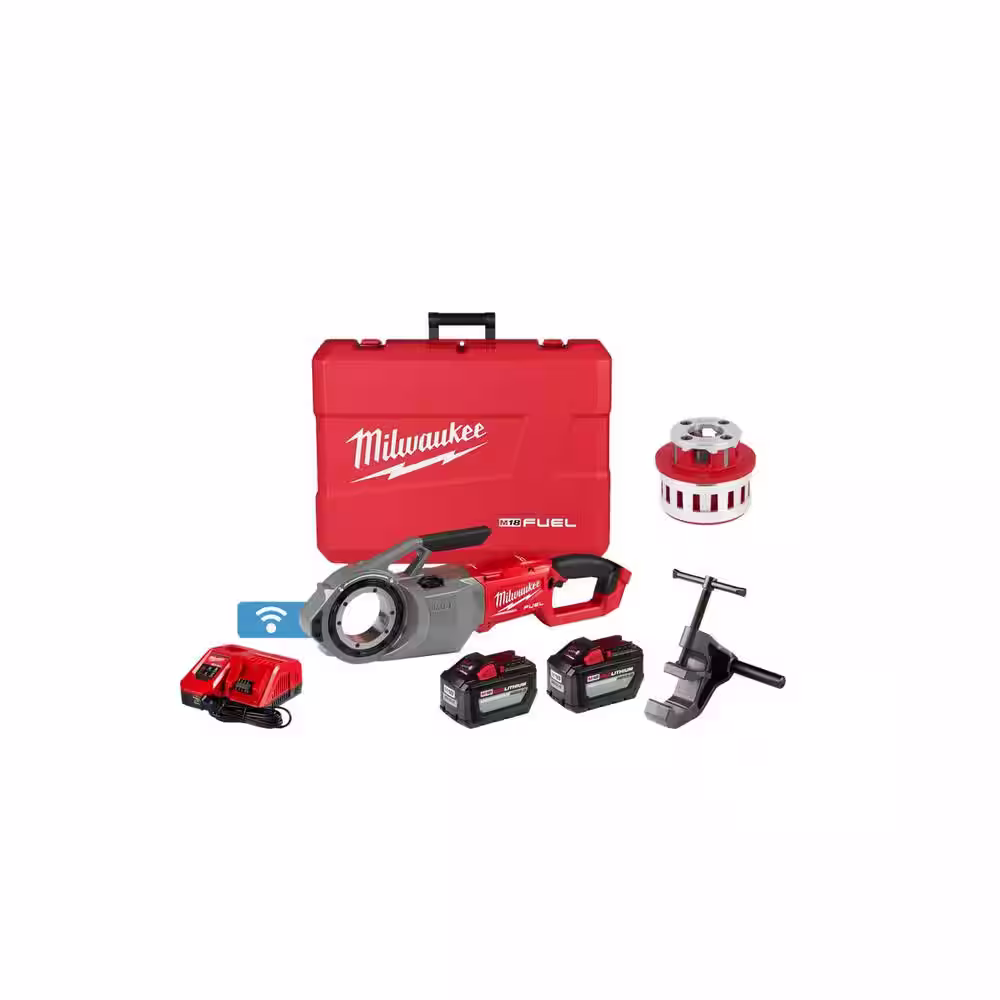 Milwaukee M18 Fuel One-Key Cordless Brushless Pipe Threader Kit w/(2) 12.0Ah Batteries & 1 in. Alloy NPT Aluminum Die Head