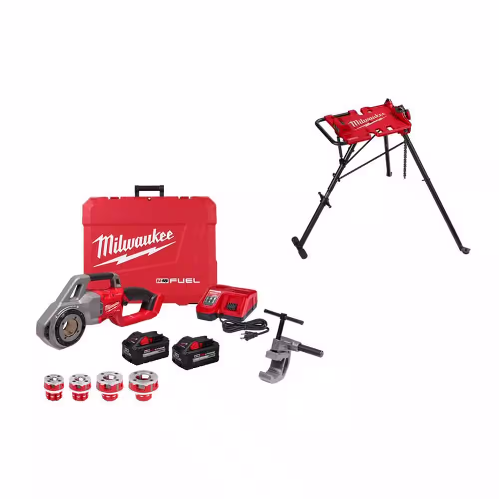 Milwaukee M18 Fuel One-Key Cordless Brushless Pipe Threader Kit with Portable Leveling Tripod Chain Vise Stand