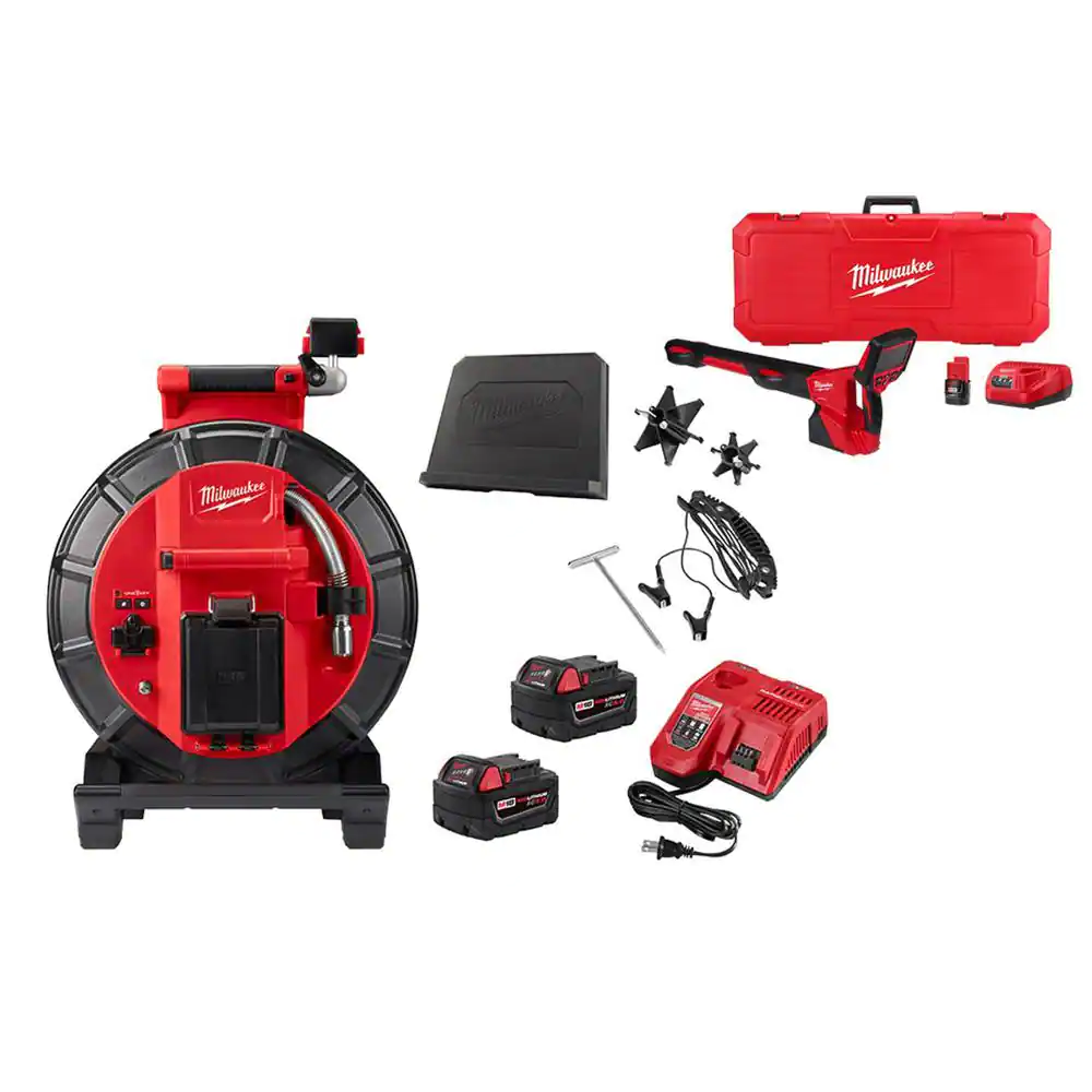 Milwaukee M18 18-Volt Lithium-Ion Cordless 200 ft. Pipeline Insp Sys Image Reel Kt w/Sys Monitr & M12 Pipeline Locatr Kt (3-Tool)