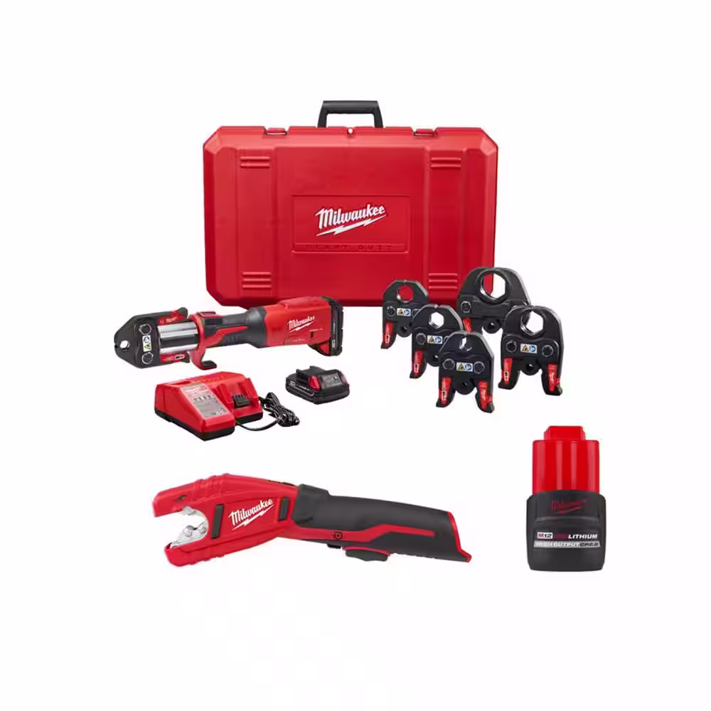 Milwaukee M18 Cordless FORCE LOGIC Press Tool Kit w/1/2 in - 2 in Jaws Kit, M12 Copper Tubing Cutter & M12 HO 2.5ah Battery