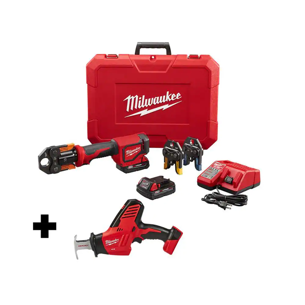 Milwaukee M18 18- volt Lithium-Ion Cordless Short Throw Press Tool Kit with 3 PEX Crimp Jaws with M12 PVC Shear Kit
