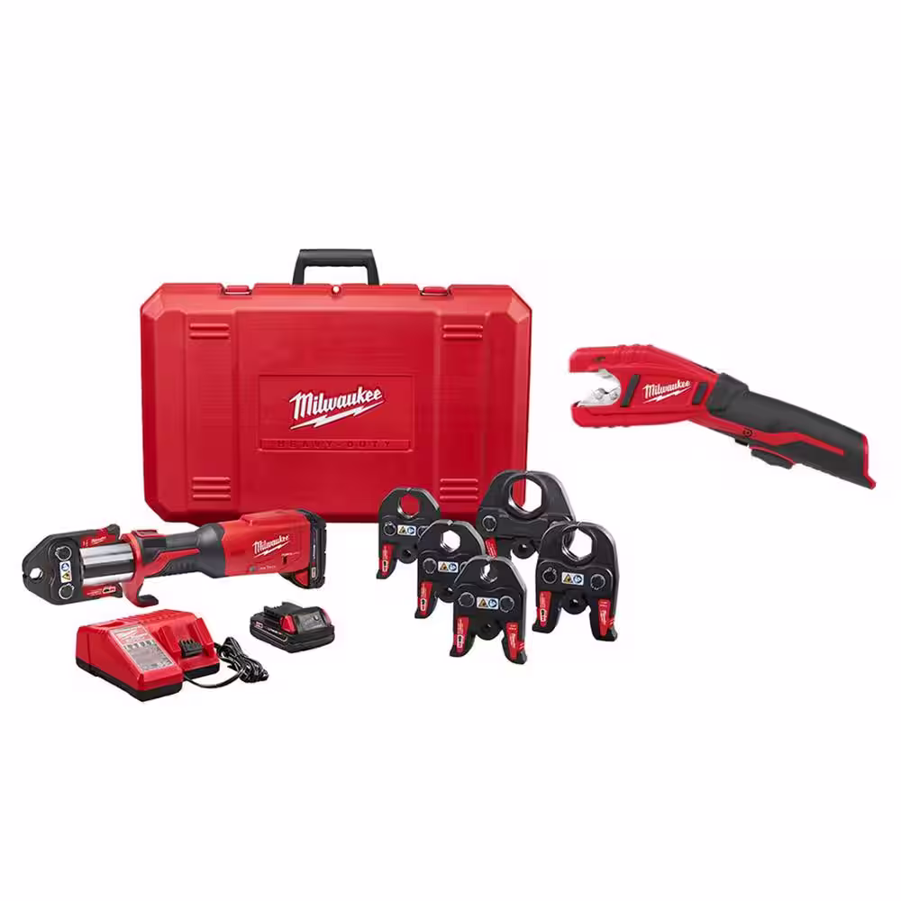 Milwaukee M12 12-Volt Lithium-Ion Force Logic Cordless Press Tool Kit (3 Jaws Included) with Free M12 Copper Tubing Cutter Kit