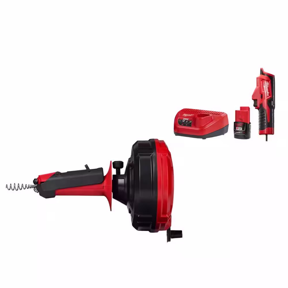 Milwaukee M12 Trap Snake 12V Lithium-Ion Cordless 4 ft. Urinal and 6 ft. Toilet Auger Combo Kit