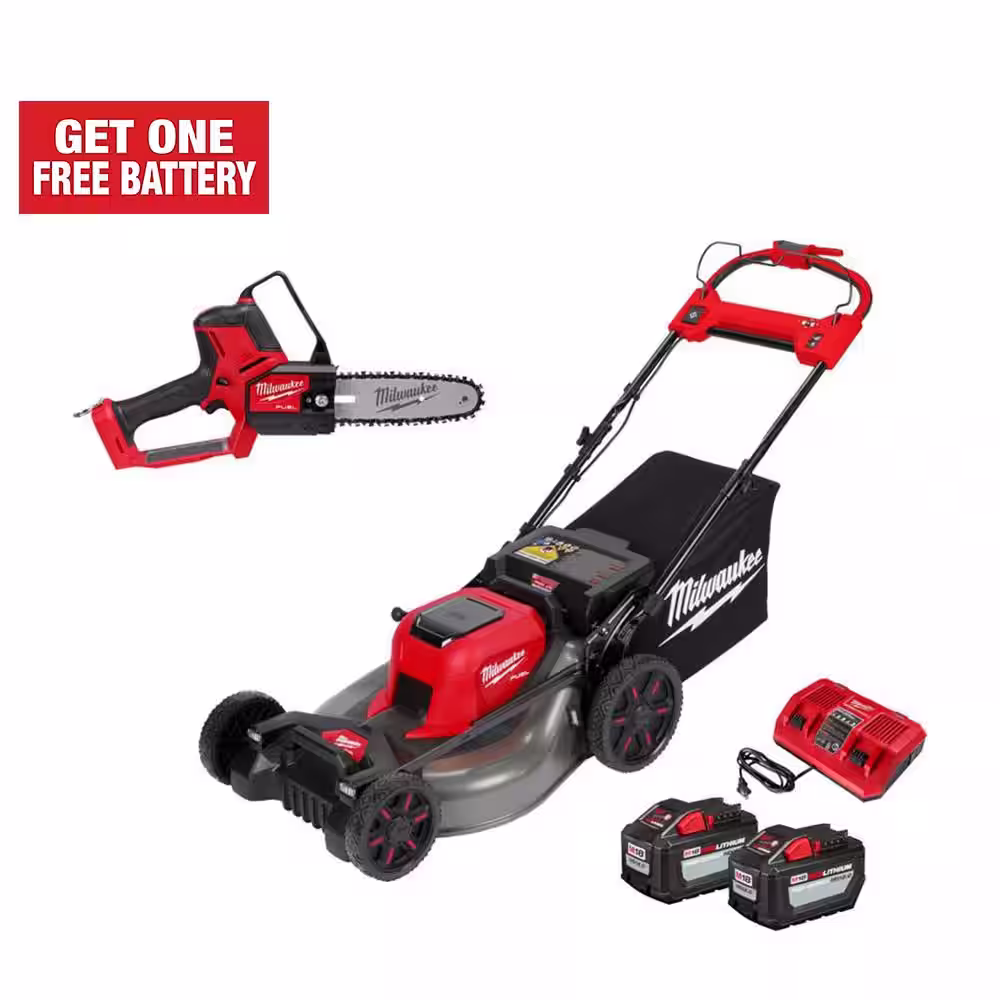 Milwaukee M18 FUEL Brushless Cordless 21 in. Dual Battery Self-Propelled Mower w/8 in. Pruning Saw, (2) 12.0Ah Battery, Charger