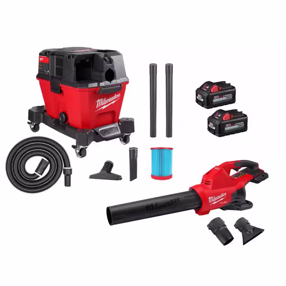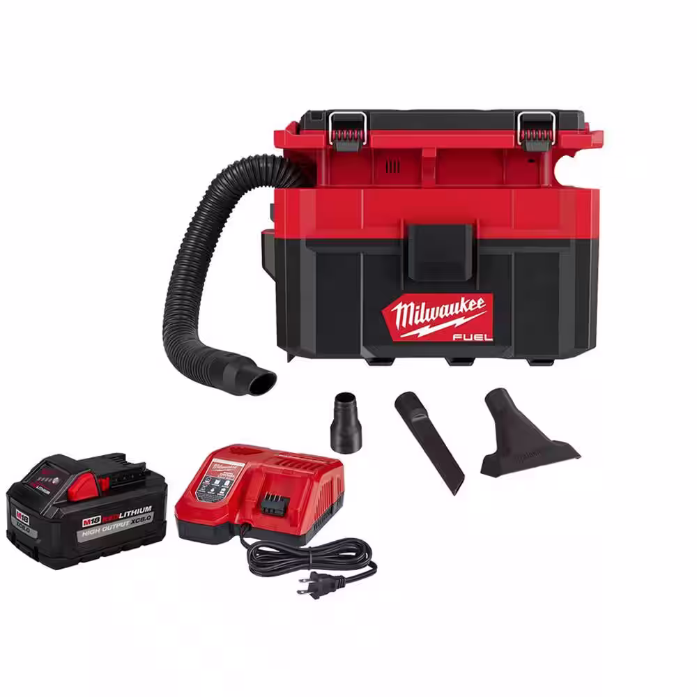 Milwaukee M18 FUEL 9 Gal. Cordless DUAL-BATTERY Wet/Dry Shop Vacuum w/XC 8.0 Ah Battery & High Output 6.0Ah Batteries (2-Pack)