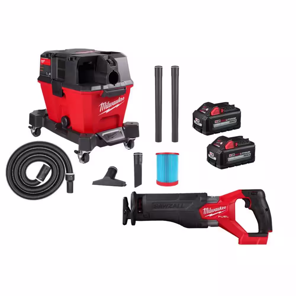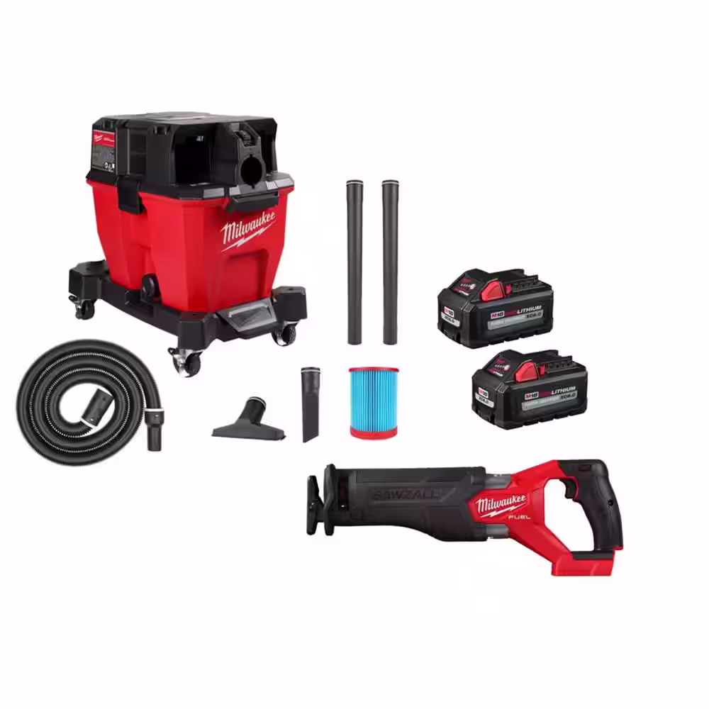 Milwaukee M18 FUEL 9 Gal. Cordless DUAL-BATTERY Wet/Dry Shop Vacuum & SAWZALL Reciprocating Saw w/6.0Ah Batteries (2-Pack)