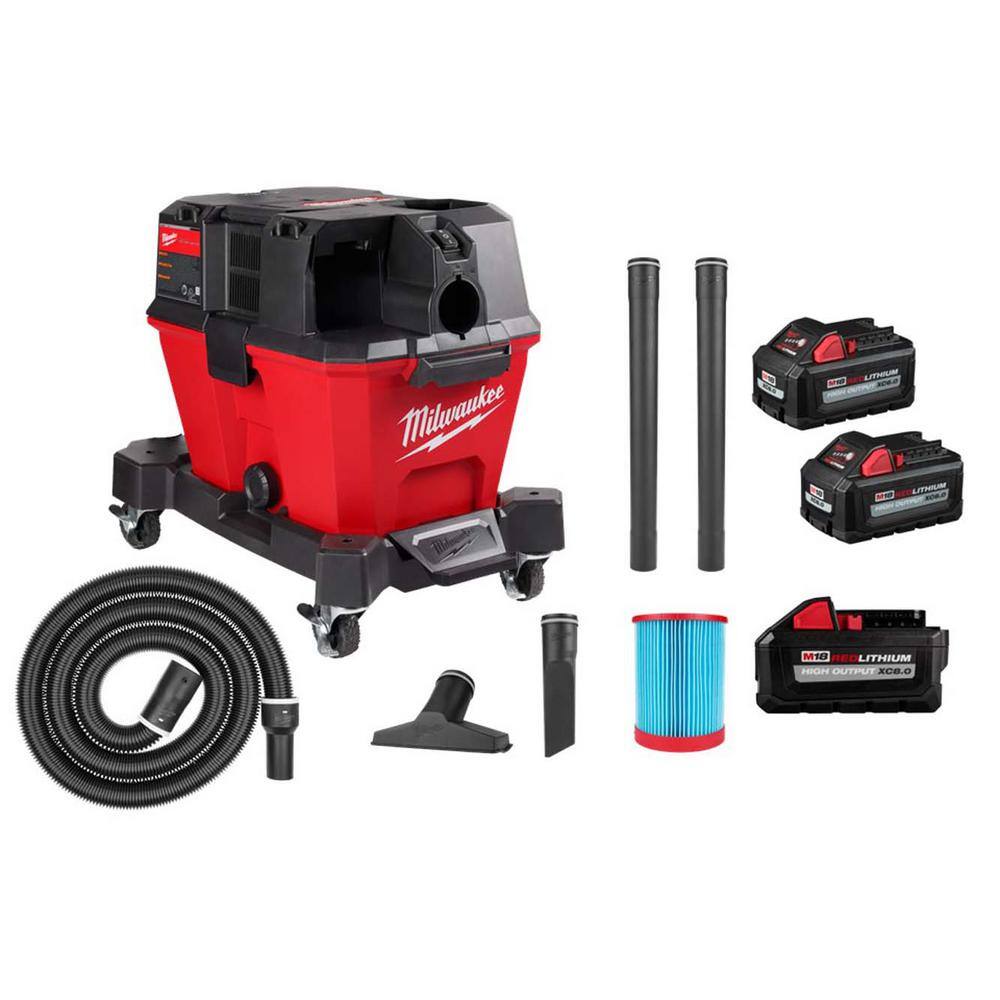 Milwaukee M18 FUEL 6 Gal. Cordless Wet/Dry Shop Vacuum w/HIGH OUTPUT XC 8.0 Ah Battery & High Output 6.0Ah Batteries (2-Pack)
