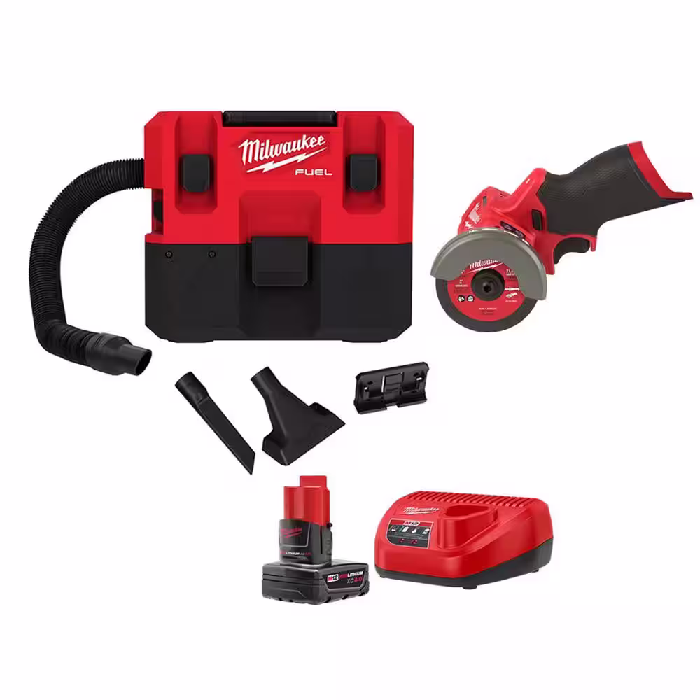 Milwaukee M12 FUEL 12-Volt Lithium-Ion Cordless 1.6 Gal. Wet/Dry Vacuum and Cut Off Saw Kit with 4.0 Ah Battery and Charger