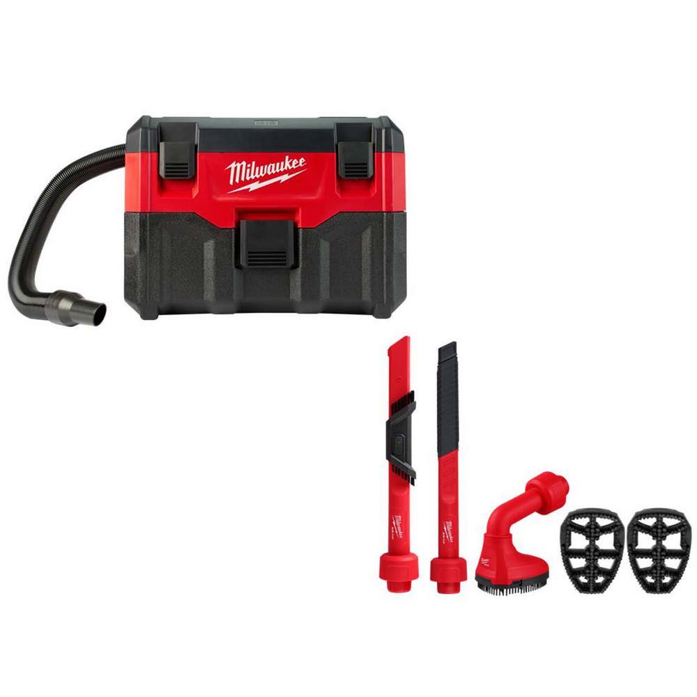 Milwaukee M18 18-Volt 2 Gal. Lithium-Ion Cordless Wet/Dry Vacuum & AIR-TIP Crevice Tool and Utility Nozzle Kit For Wet/Dry Vacuums