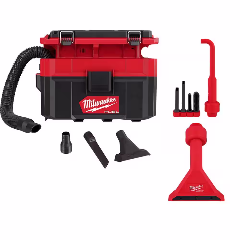 Milwaukee M18 FUEL 6 Gal. Cordless Wet/Dry Shop Vacuum w/Filter, Hose and AIR-TIP 1-1/4 in. - 2-1/2 in. Swiveling Palm Brush Tool