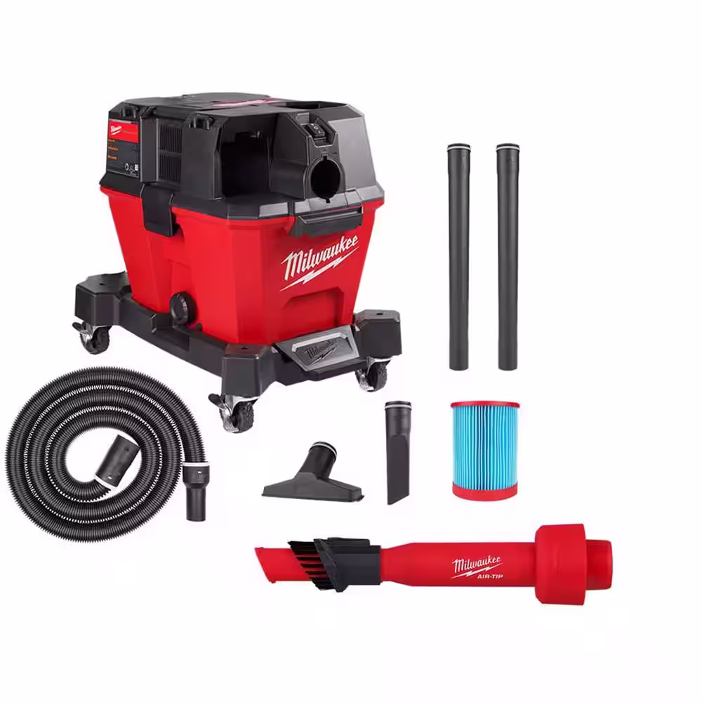 Milwaukee M18 FUEL 6 Gal. Cordless Wet/Dry Shop Vac w/Filter, Hose and AIR-TIP 1-1/4 in. - 2-1/2 in. (1-Piece) 2-IN-1 Util. Brush