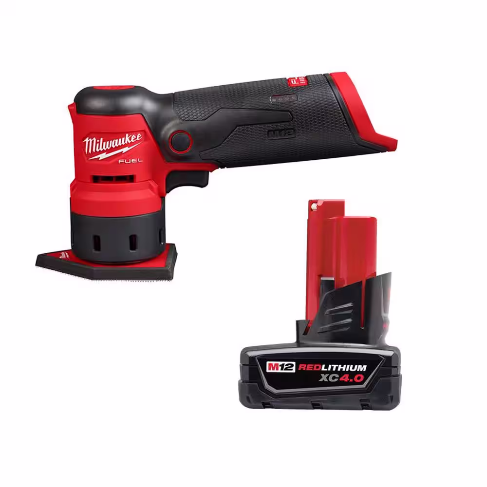 Milwaukee M12 FUEL 12-Volt Lithium-Ion Brushless Cordless Orbital Detail Sander w/XC 4.0 Ah Battery Pack