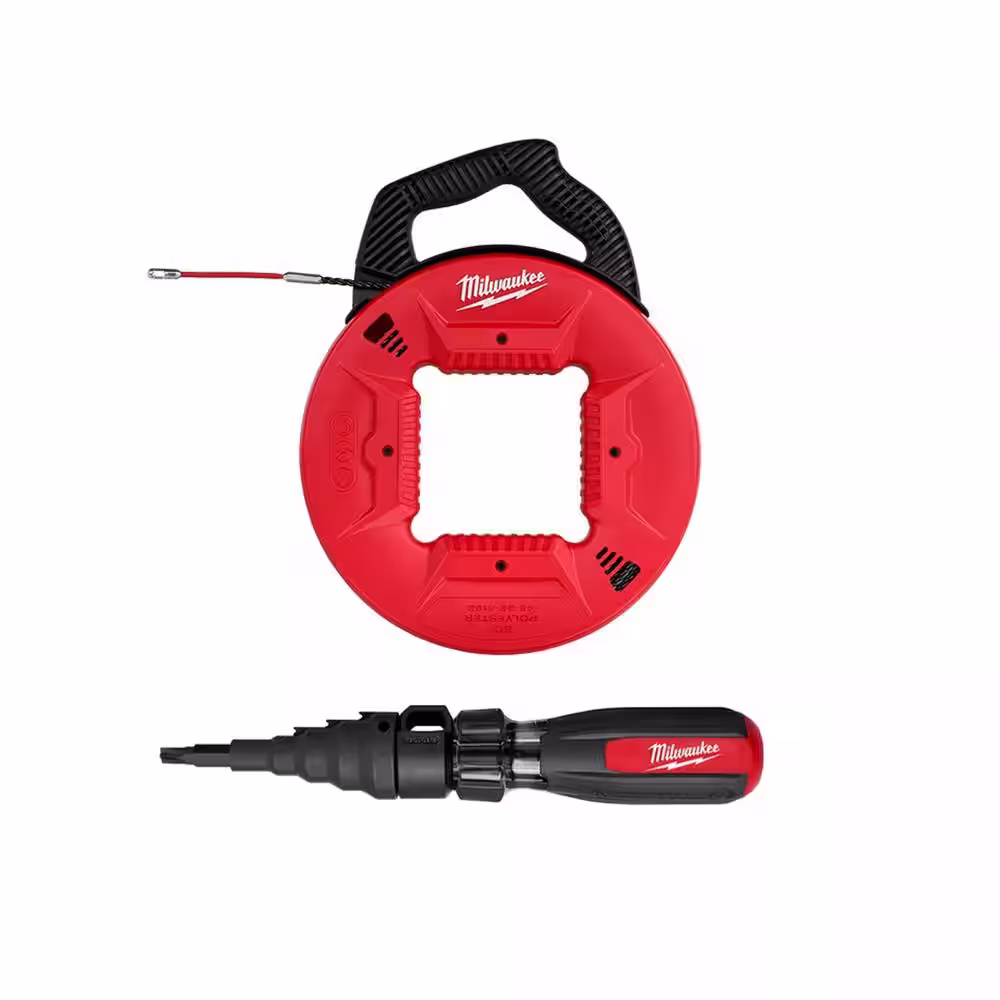 Milwaukee 50 ft. x 13 in. Polyester Fish Tape with Flexible Metal Leader with 7-in-1 Conduit Reamer