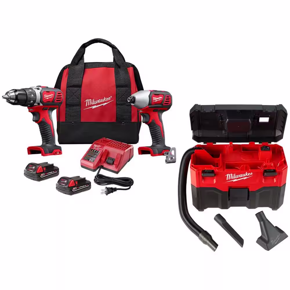 Milwaukee M18 18-Volt Lithium-Ion Cordless Drill Driver/Impact Driver Combo Kit with M18 2 Gal. Wet/Dry Vacuum