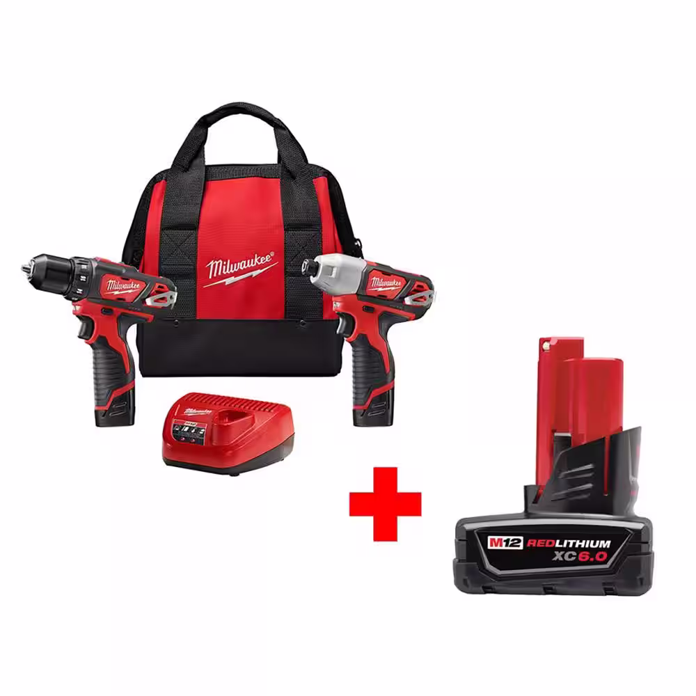 Milwaukee M12 12V Lithium-Ion Cordless Drill Driver/Impact Driver Combo Kit (2-Tool) with (1) 6.0AH Battery