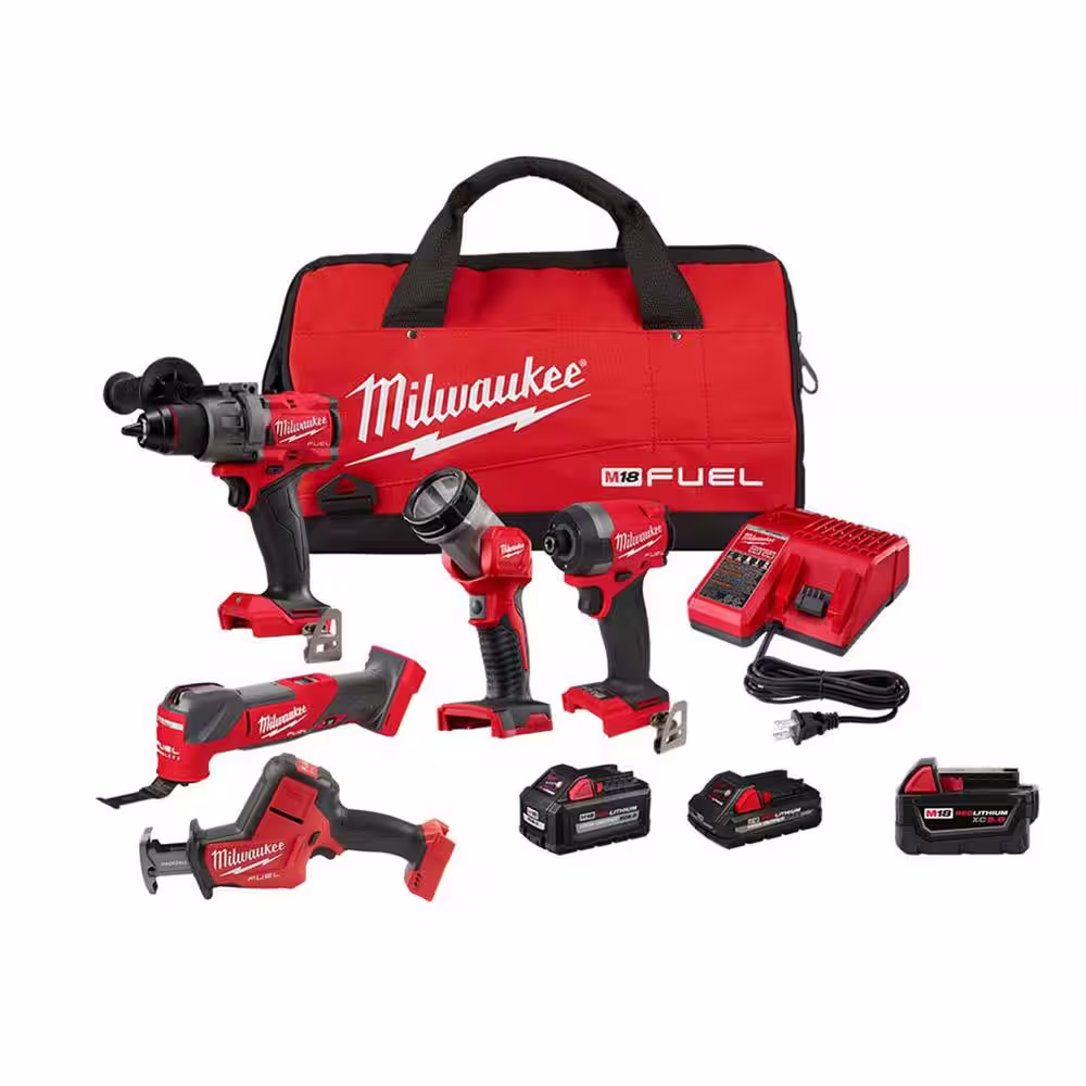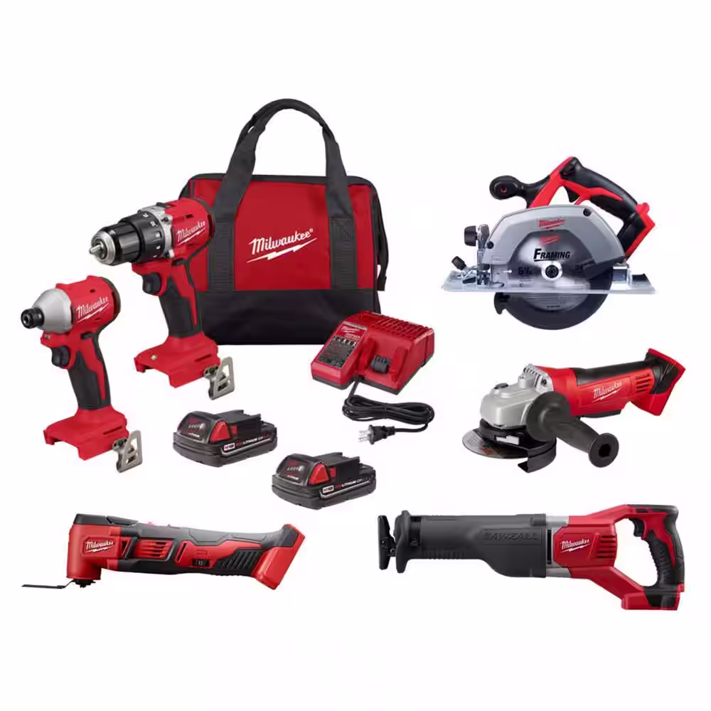 Milwaukee M18 18V Lithium-Ion Cordless Compact Drill/Impact/Multi-Tool/Circular Saw/Recip Saw/Grinder Combo Kit (6-Tool)